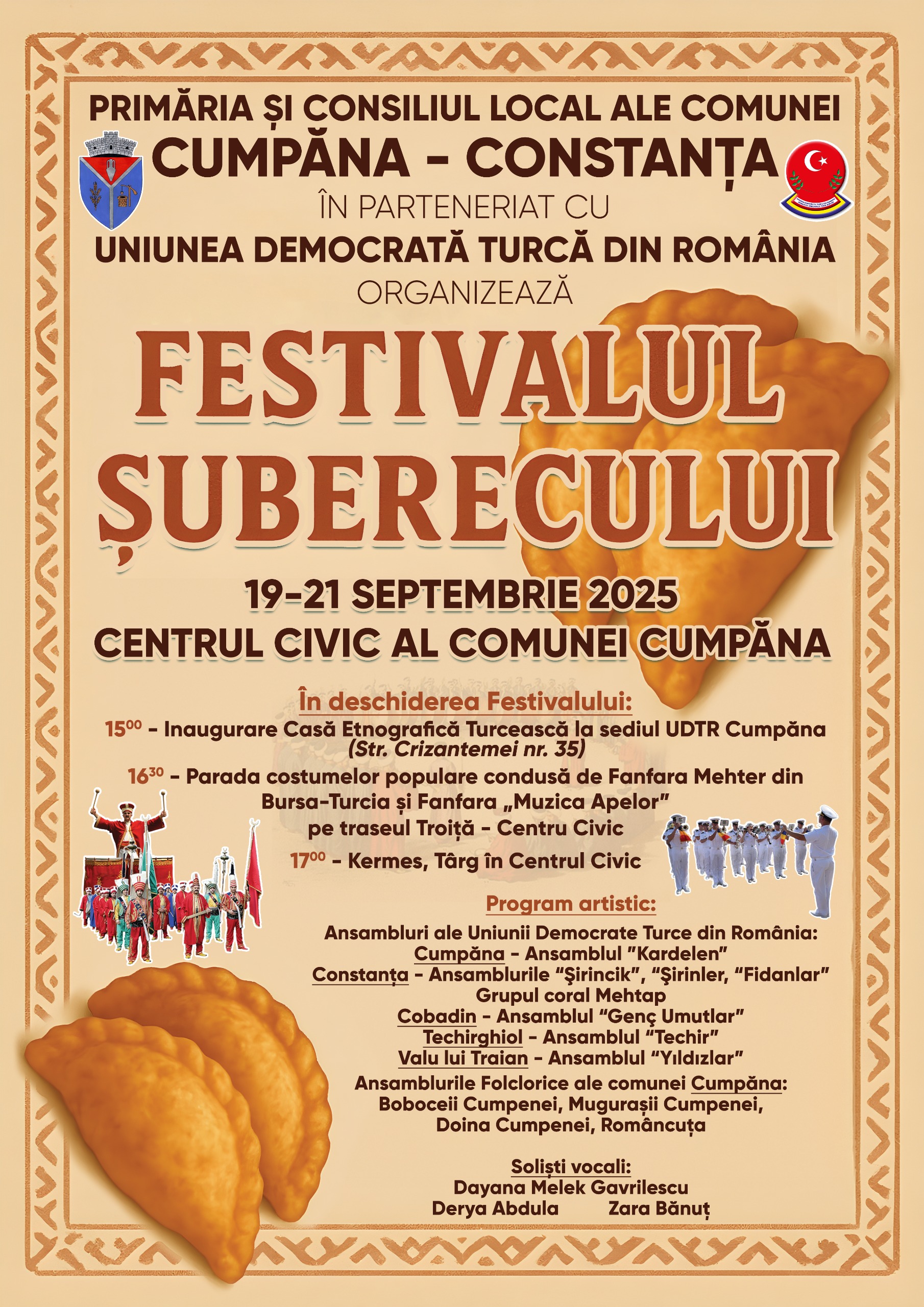 Primăria și Consiliul Local ale comunei Cumpăna, în parteneriat cu Uniunea Democrată Turcă din România, au deosebita bucurie de a vă invita să participați la prima ediție a Festivalului Șuberecului.