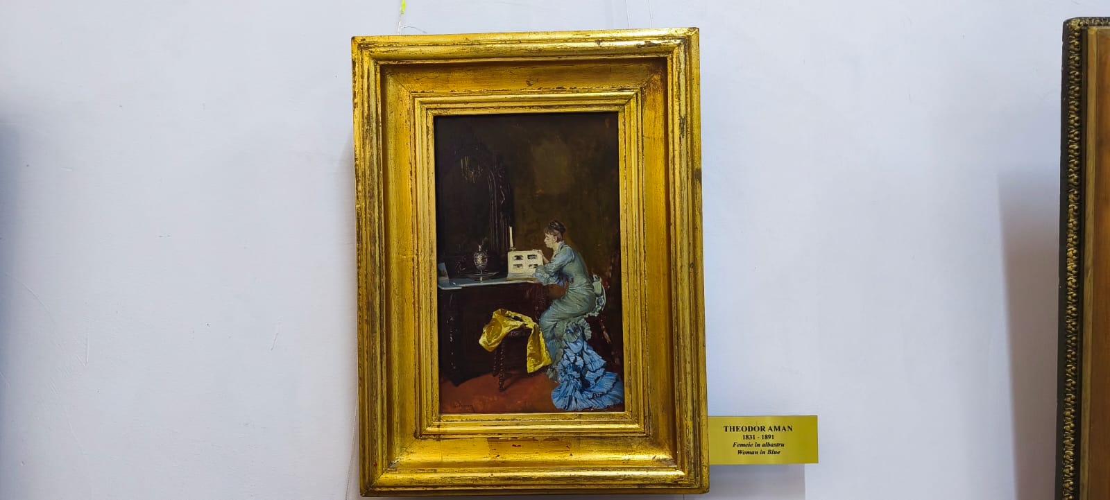 Femeie în albastru, tabloul de mici dimensiuni realizat de marele pictor român, Theodor Aman, chiar în interiorul casei sale, este piesa de patrimoniu de astăzi.