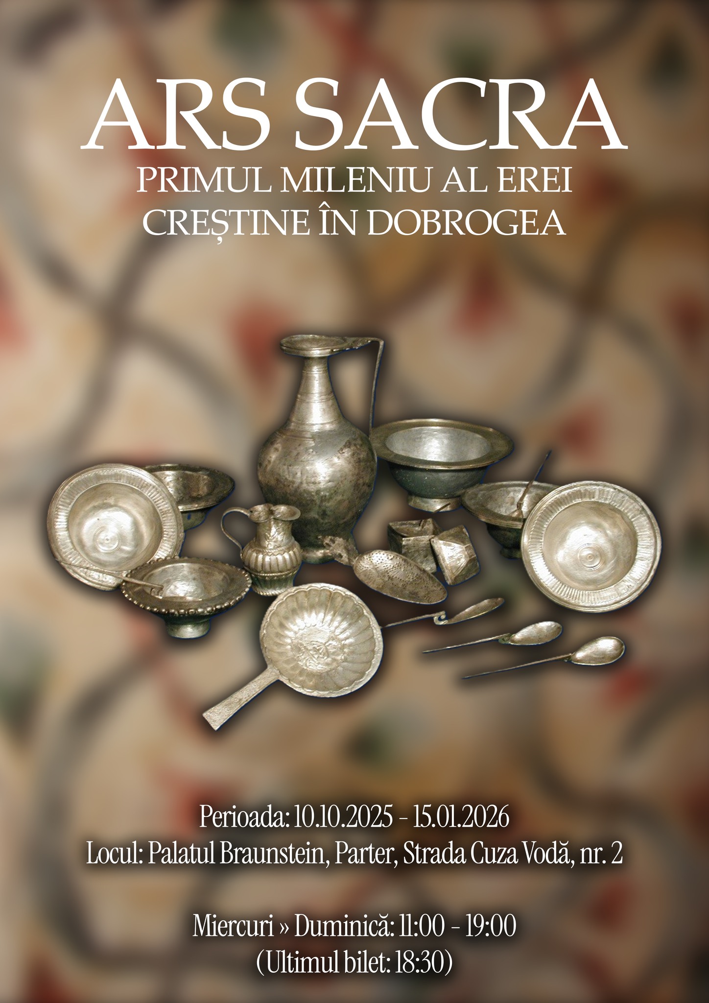 83 de artefacte din patrimoniul arheologic dobrogean, cu temă creștină, rămân expuse până pe 15 ianuarie la Palatul Braunstein din Iași.  Expoziția „ARS SACRA. Primul mileniu al erei creștine în Dobrogea”  aduce în prim-plan rolul esențial pe care pământul dintre Dunăre și mare l-a avut în conturarea identității creștine timpurii pe teritoriul României.