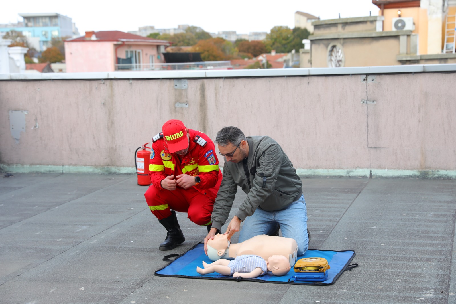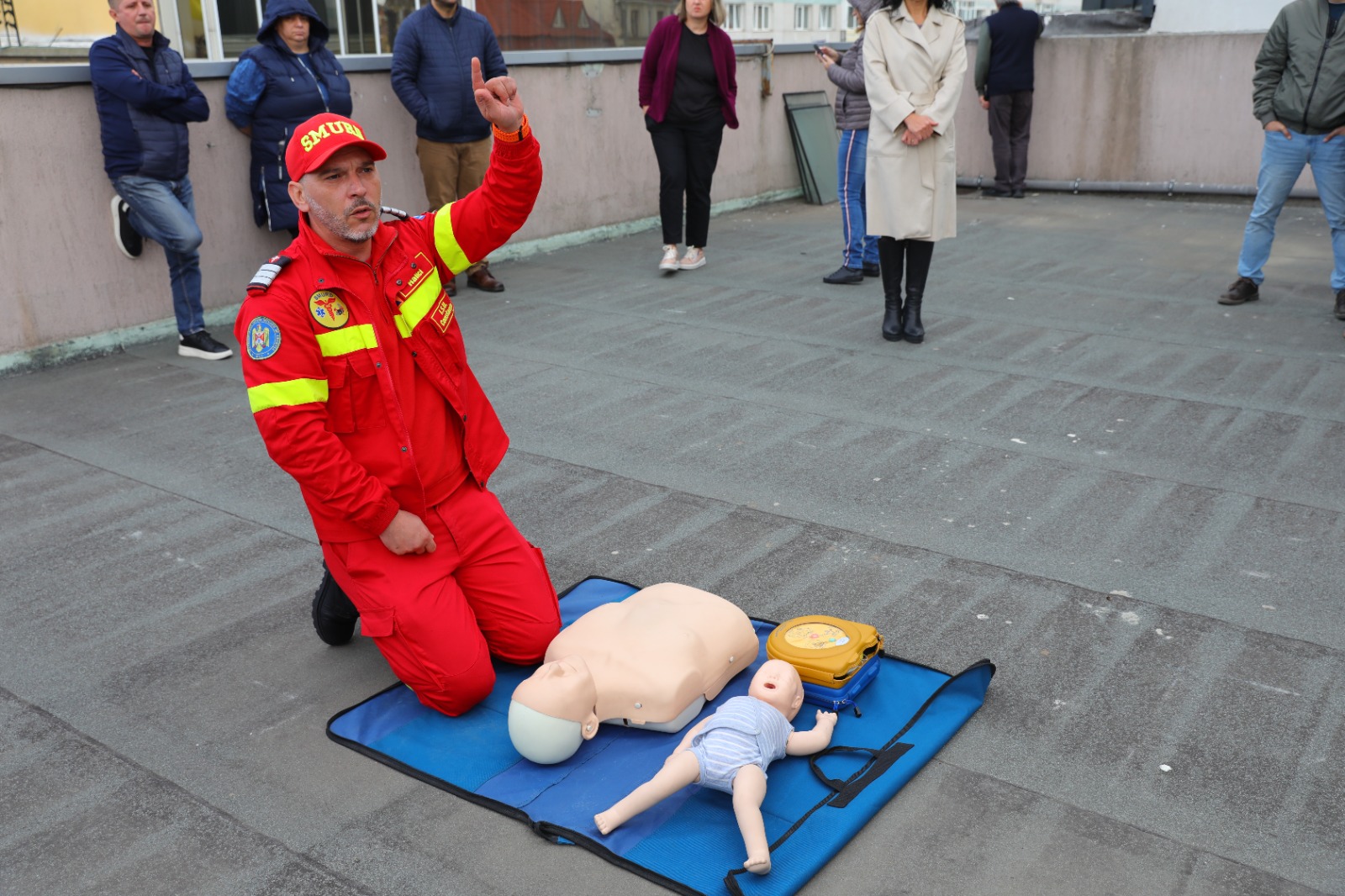 În cadrul exercițiului, angajații au fost instruiți de membrii echipajului SMURD, care au susținut atât o sesiune teoretică, cât și una practică. Participanții au exersat manevrele de resuscitare în caz de stop cardio-respirator, modalitățile de dezobstrucționare a căilor respiratorii, acordarea primului ajutor în cazul unui pacient traumatizat și îngrijirea plăgilor și a țesuturilor moi.