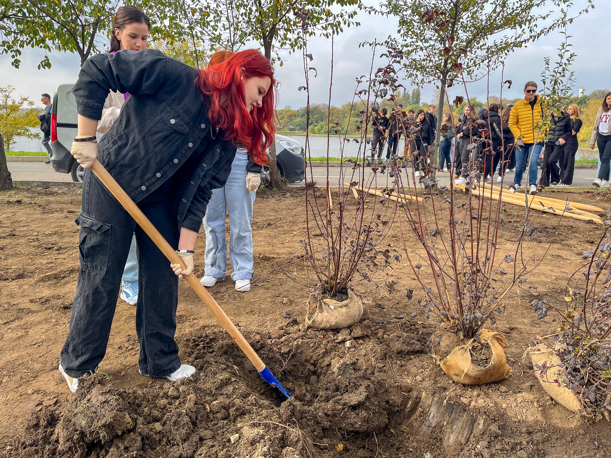 TULCEA: Plantare de toamnă pe malul lacului Ciuperca. 80 de arbori și 220 de arbuști pentru un oraș mai verde