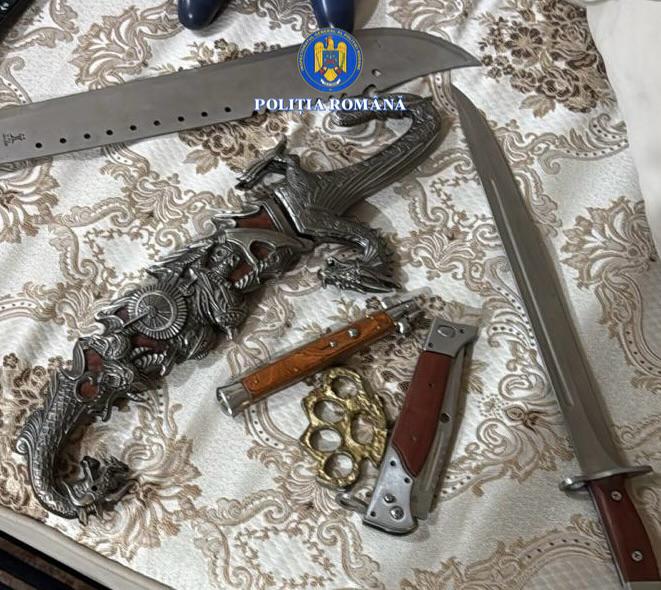 În urma efectuării perchezițiilor au fost descoperite și ridicate mai multe obiecte contondente și arme albe, iar persoanele în cauză au fost conduse la sediul poliției, în vederea audierii.