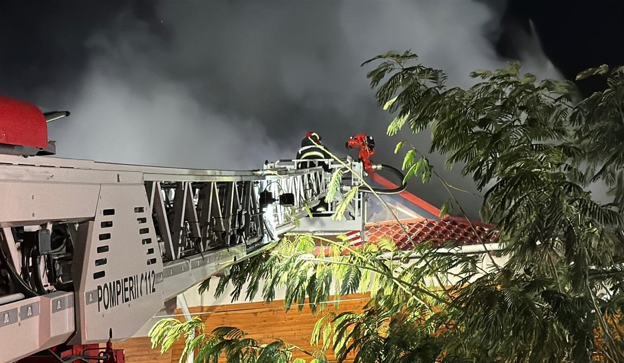 „Incendiul se manifestă la acoperişul unităţii de cazare, cu flacără deschisă, iar pompierii intervin pe toate laturile clădirii pentru a limita propagarea incendiul şi la acoperişul unităţii de alimentaţie publică”, informează sursa citată.