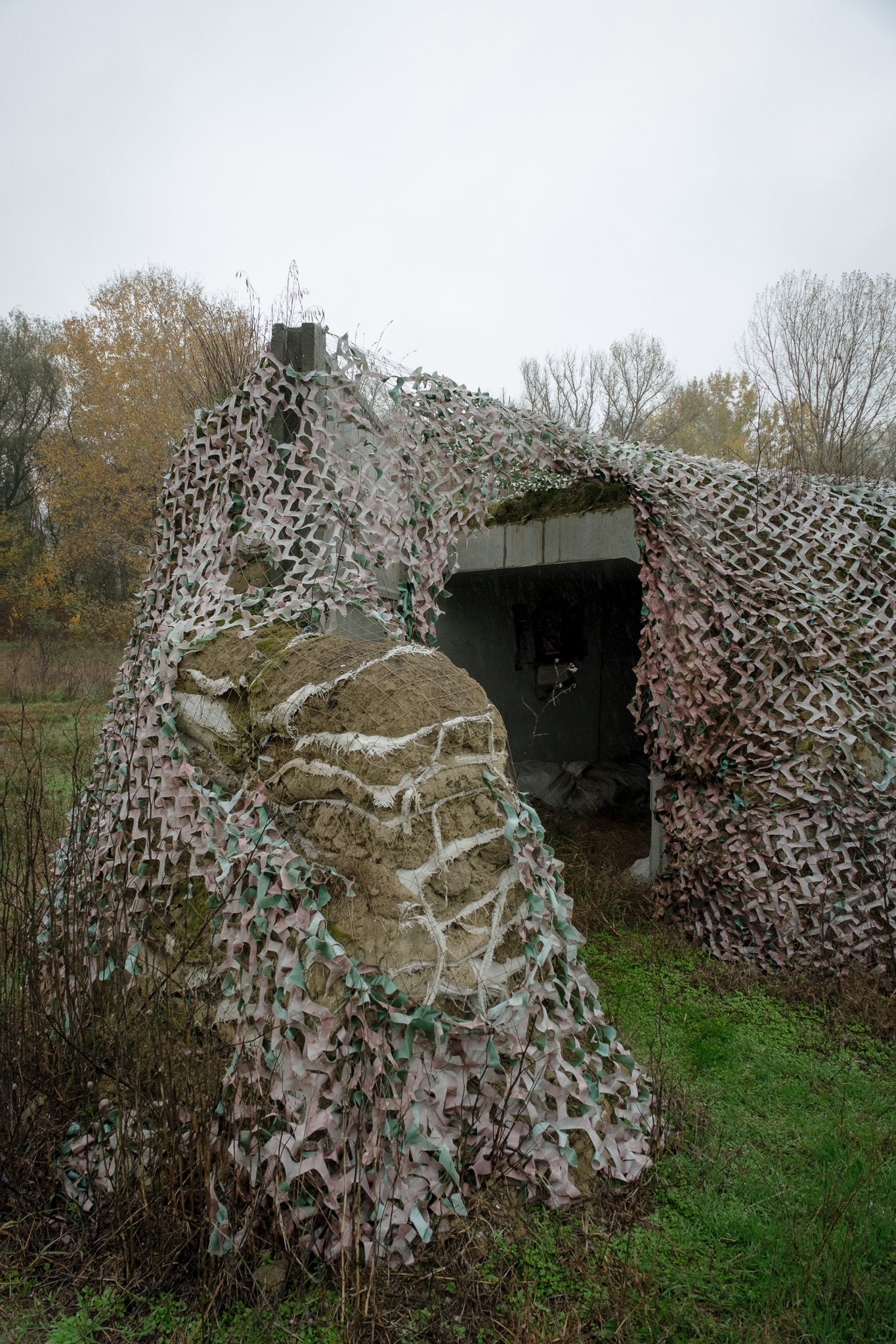 Câteva sute de metri mai încolo, la ieșirea din sat dinspre Pardina, se află cel de-al doilea adăpost de protecție civilă, aproape identic cu primul. Singura diferență e că, aici, localnicii au adus o icoană de carton, pe care au montat-o cu scotch pe perete, la intrare.