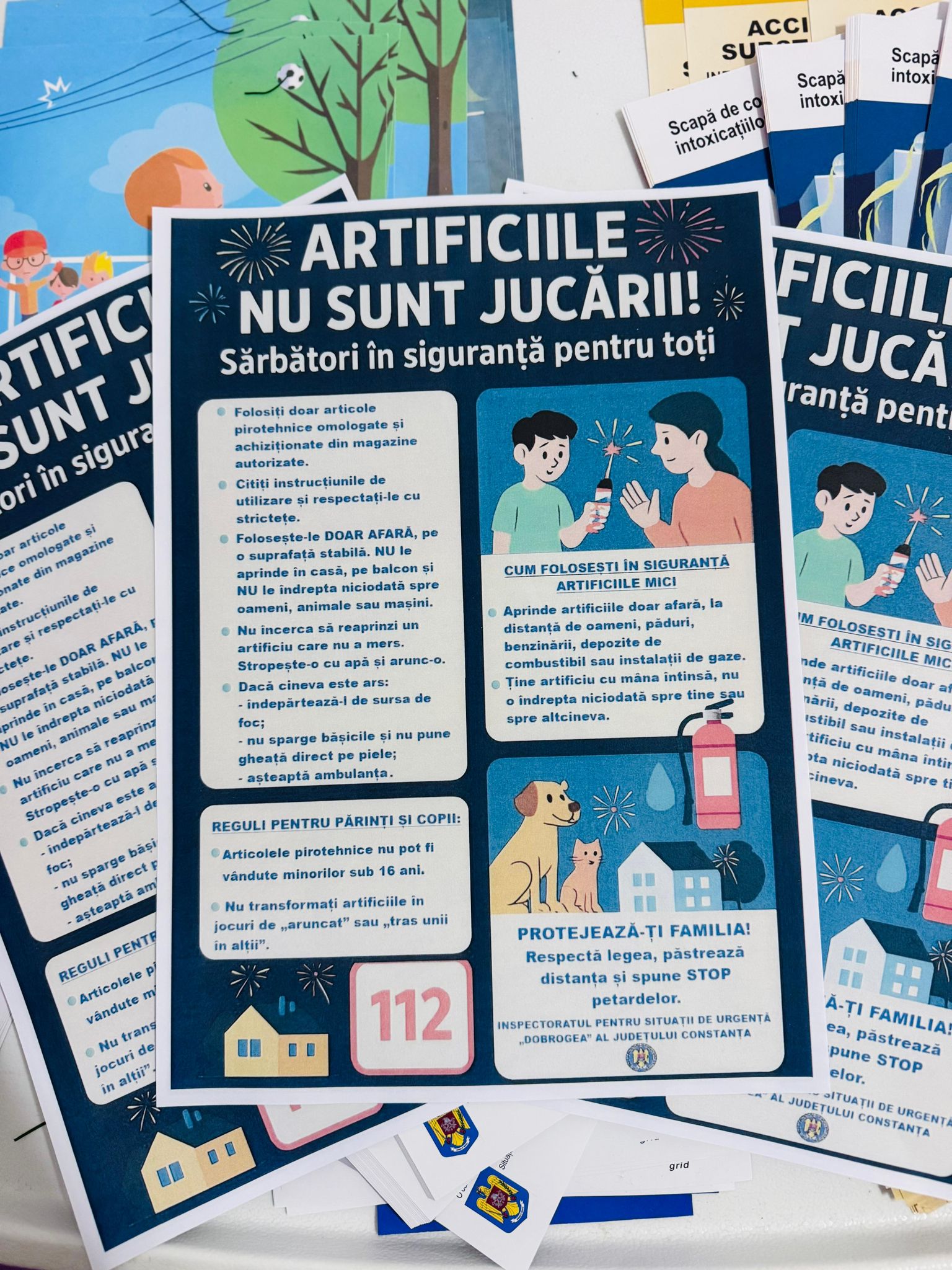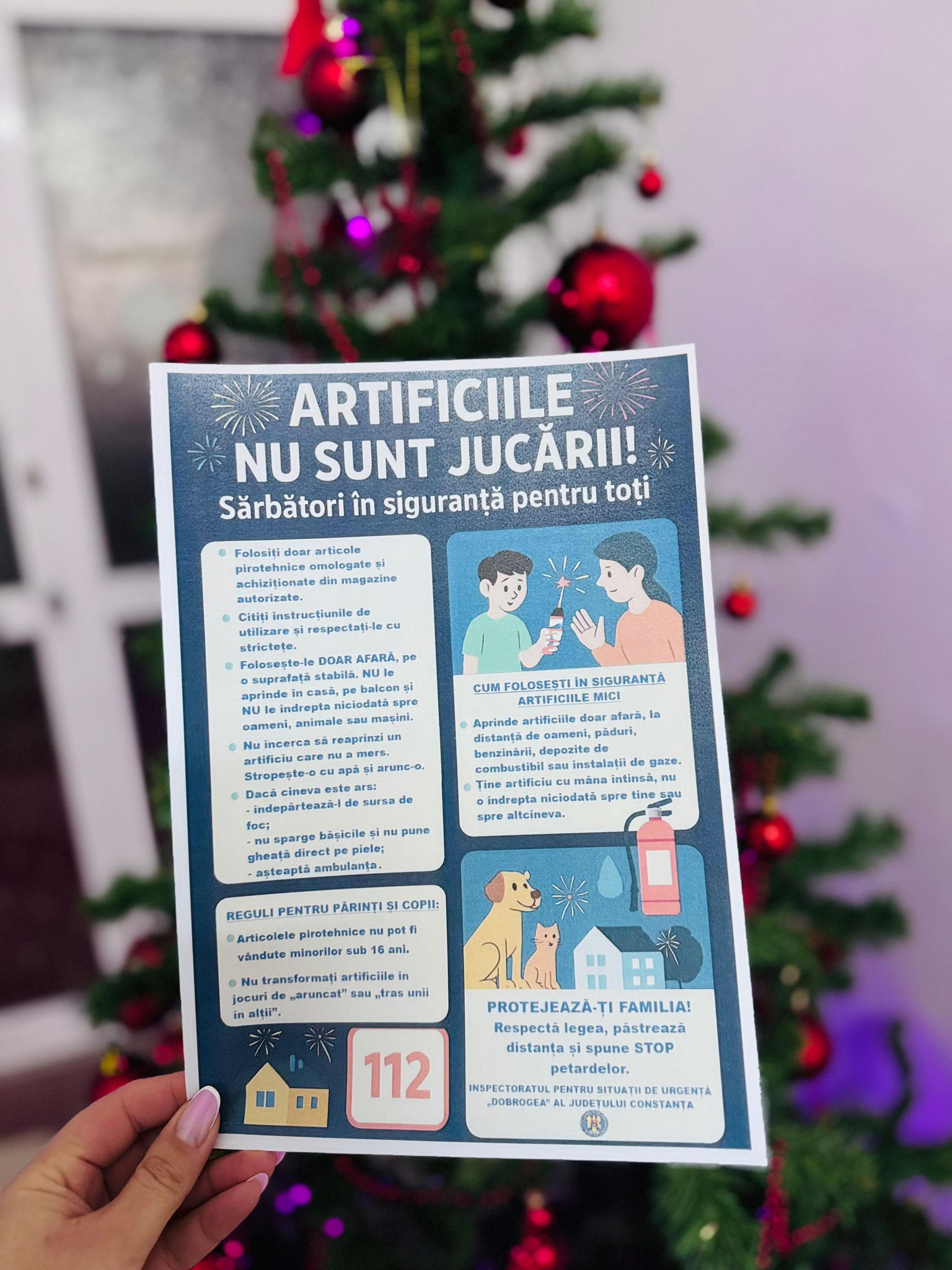 În aceasta perioada, pompierii din cadrul Inspectoratului pentru Situații de Urgență „Dobrogea” al județului Constanța vor desfășura activități de informare preventivă și distribuirea de materiale de informare în cadrul campaniei „Sărbători în siguranță pentru toți – Artificiile nu sunt jucării!”.