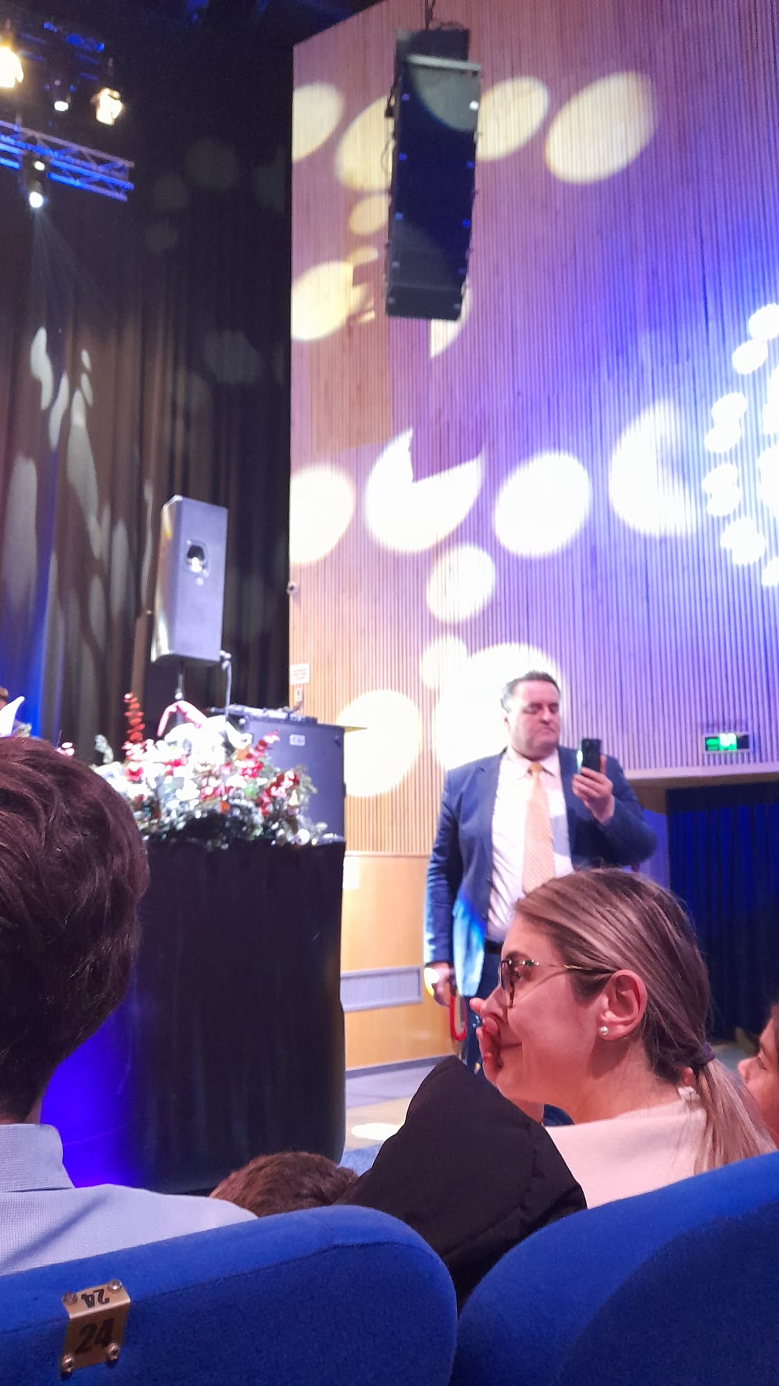 Mai am, mai am, pentru că am cumpărat o serie. Eu lucrez în 8 sate din județ și fiecare sat are mascotă un ursuleț mai mic, care sunt frați între ei. Acești ursuleți albaștri, se întâlnesc din când în când la spectacolele reunite, bineînțeles. Îi vom avea chiar la Muzeul de Artă sâmbătă la ora 15.00, la concertul “Vis de iarnă”. Deci, cei 8 ursuleți care sunt în fiecare comună, se întâlnesc pentru că sunt frați. Iar acesta mare, pe care l-ați văzut și azi dimineață, e al meu personal, doarme cu mine, mă rog, mi-e drag de el că să spunem așa, e ursulețul armoniei. Eu de asta am și făcut sesizarea cu ursuleții din Piața Ovidiu, pentru că în urma sesizării mele au fost dați ursuleții jos, din Piața Ovidiu. Este înregistrată pe 2 decembrie, am și trimis-o presei. Dimineață am trimis-o, la 15.50, s-a înregistrat oficial, și la ora 18.00, ursuleții erau dați jos. Dacă doar comentăm pe Facebook și ieșim în stradă și urlăm, nu se rezolvă nimic. Trebuie frumos, elegant, pe e-mail, acum totul e digitalizat, online. Am făcut sesizare, s-a înregistrat, domnul Chițac a executat, în două ore ursuleții erau dați jos. L-am felicitat, îi mulțumesc domnului primar că a ascultat de vocea armoniei, de mine, Oancea Bogdan.