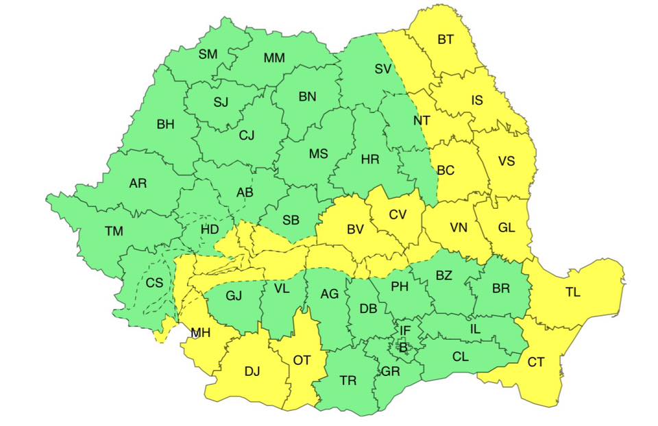 Potrivit ANM, atenționare Cod galben este valabilă până luni, ora 23:00, în Moldova, Dobrogea, sudul și vestul Olteniei și sud-estul Transilvaniei vor fi intensificări ale vântului cu viteze de 50 – 70 km/h.