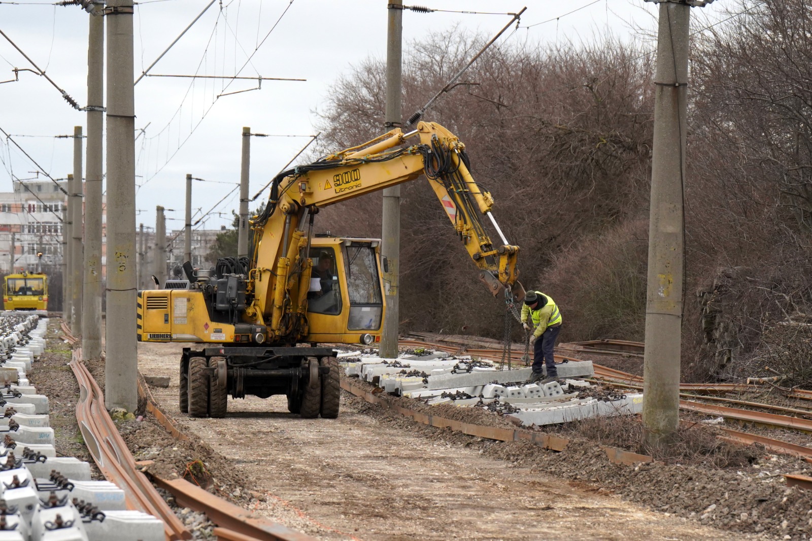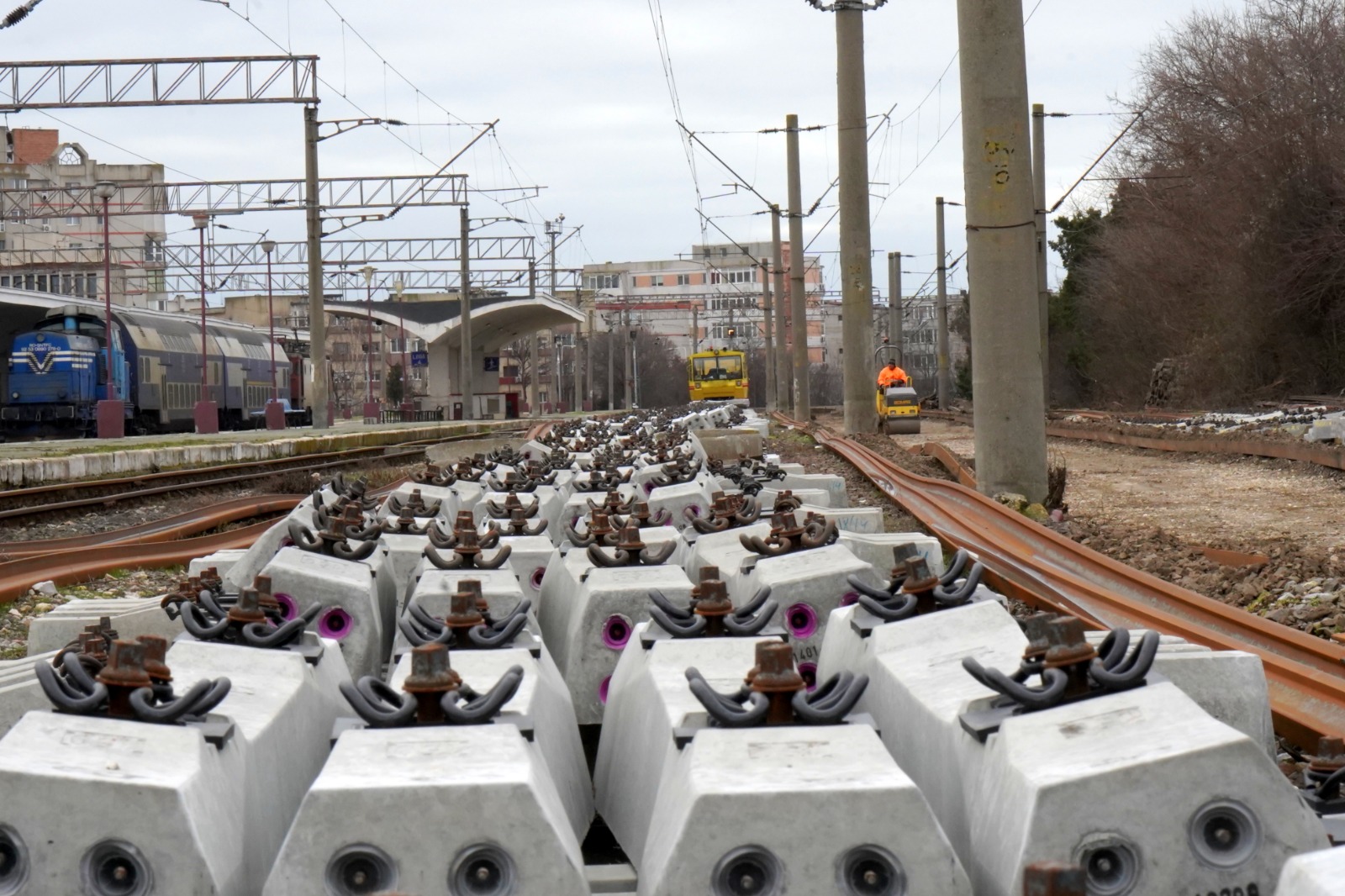 - montarea în cale a unui număr de 11.407 bucăți traverse beton pentru șină tip 60;