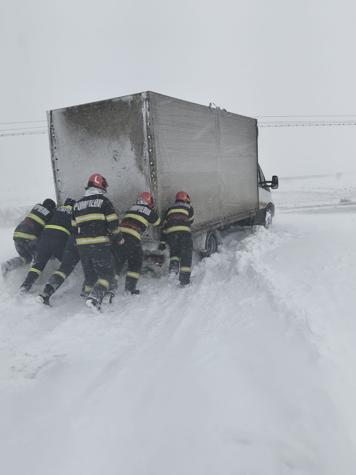În cursul acestei zile, pompierii de la Secția Măcin se întorceau de la o intervenție din județul Tulcea, când au observat pe marginea drumului o dubă rămasă înzăpezită. Șoferul încerca să își continue deplasarea, însă stratul gros de zăpadă nu i-a mai permis acest lucru.